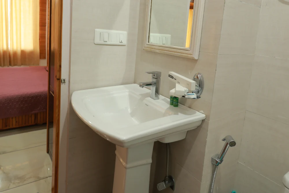Enjoy a comfortable and peaceful stay in our Deluxe Room, thoughtfully designed for relaxation amidst the beauty of the mountains. The room features warm interiors cozy lightning, and modern amenities to ensure a pleasant experience for couples, families, and leisure travelers. Each Deluxe Room comes with a comfortable bed, attached bathroom with modern fittings, and 24-hour hot & cold eater. Large windows allow you to enjoy scenic views and natural light throughout the day.